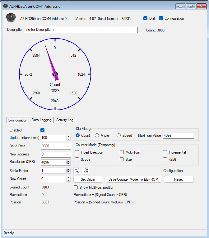 - A2Read - The A2Read example is a CSharp command line example that displays one or more A2 encoder counts depending on the device addresses supplied as command line parameters.